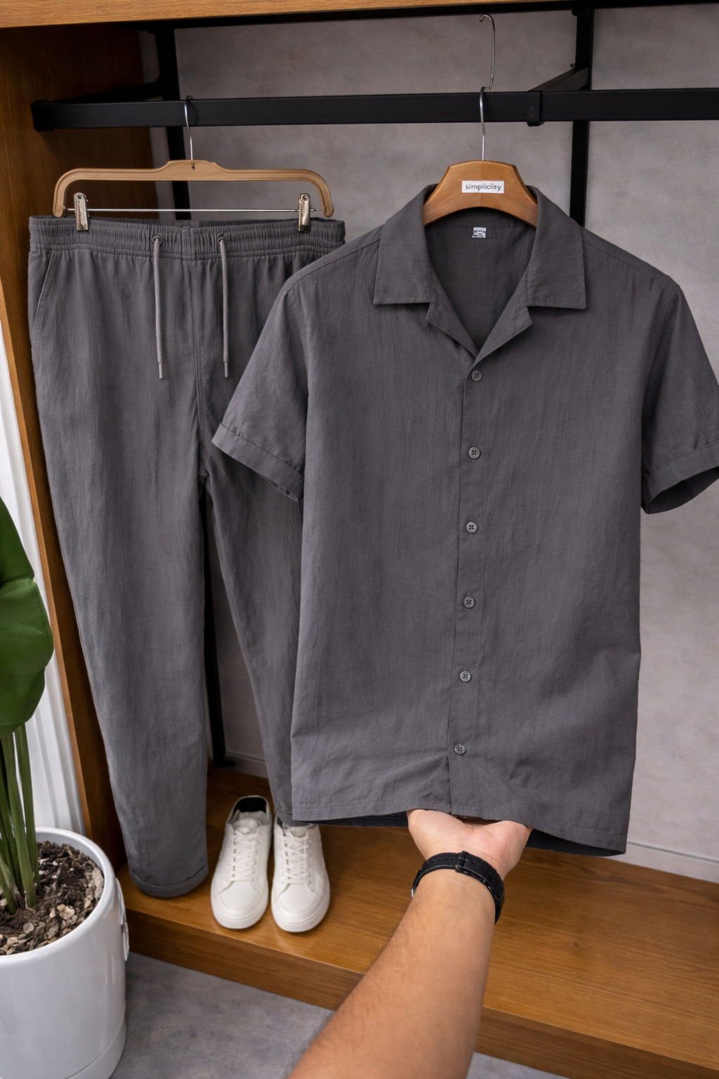Linen set crafted from breathable, lightweight fabric, offering a relaxed fit and clean, stylish look for everyday comfort, perfect for warm weather and effortless casual wear.