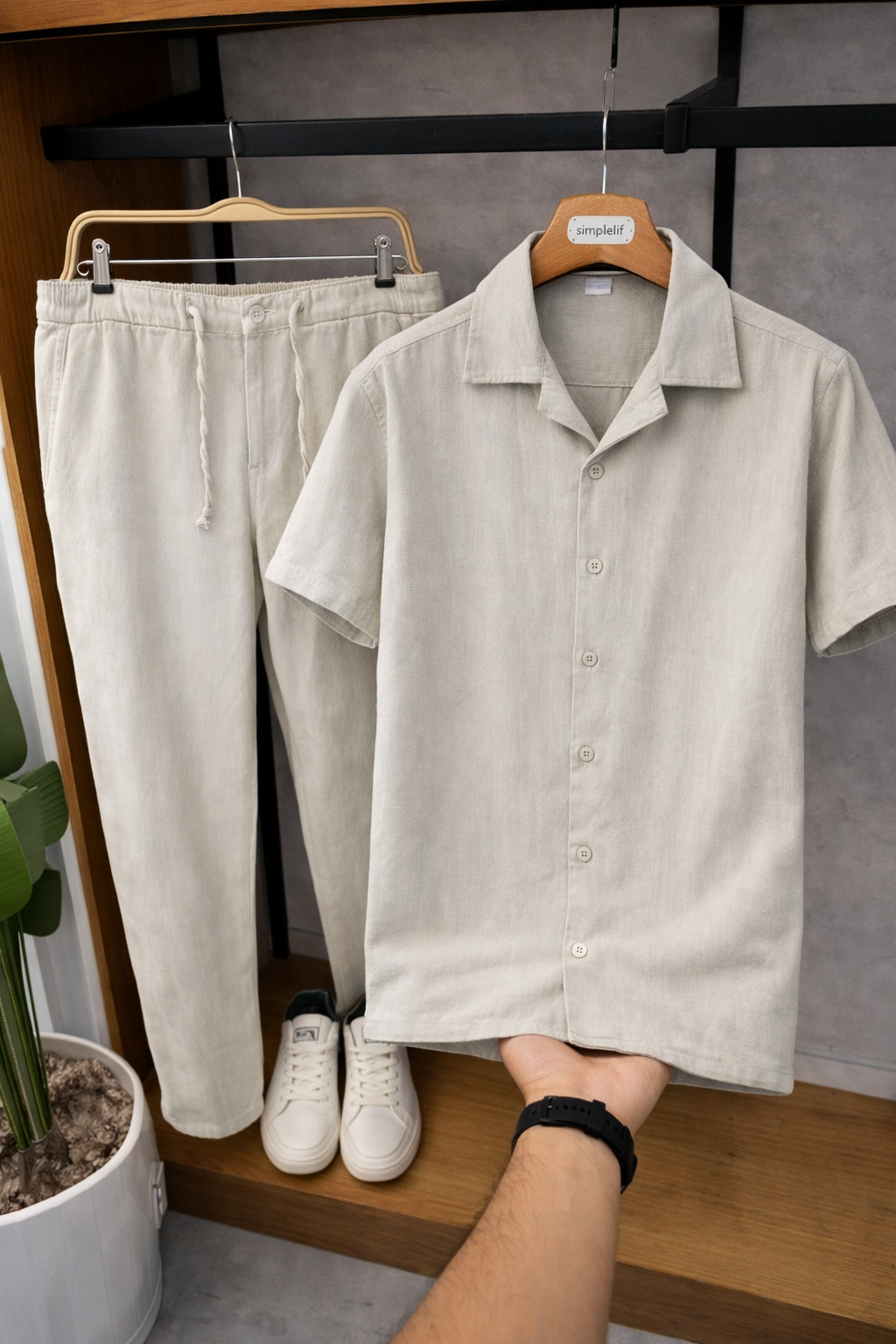 Linen set crafted from breathable, lightweight fabric, offering a relaxed fit and clean, stylish look for everyday comfort, perfect for warm weather and effortless casual wear.